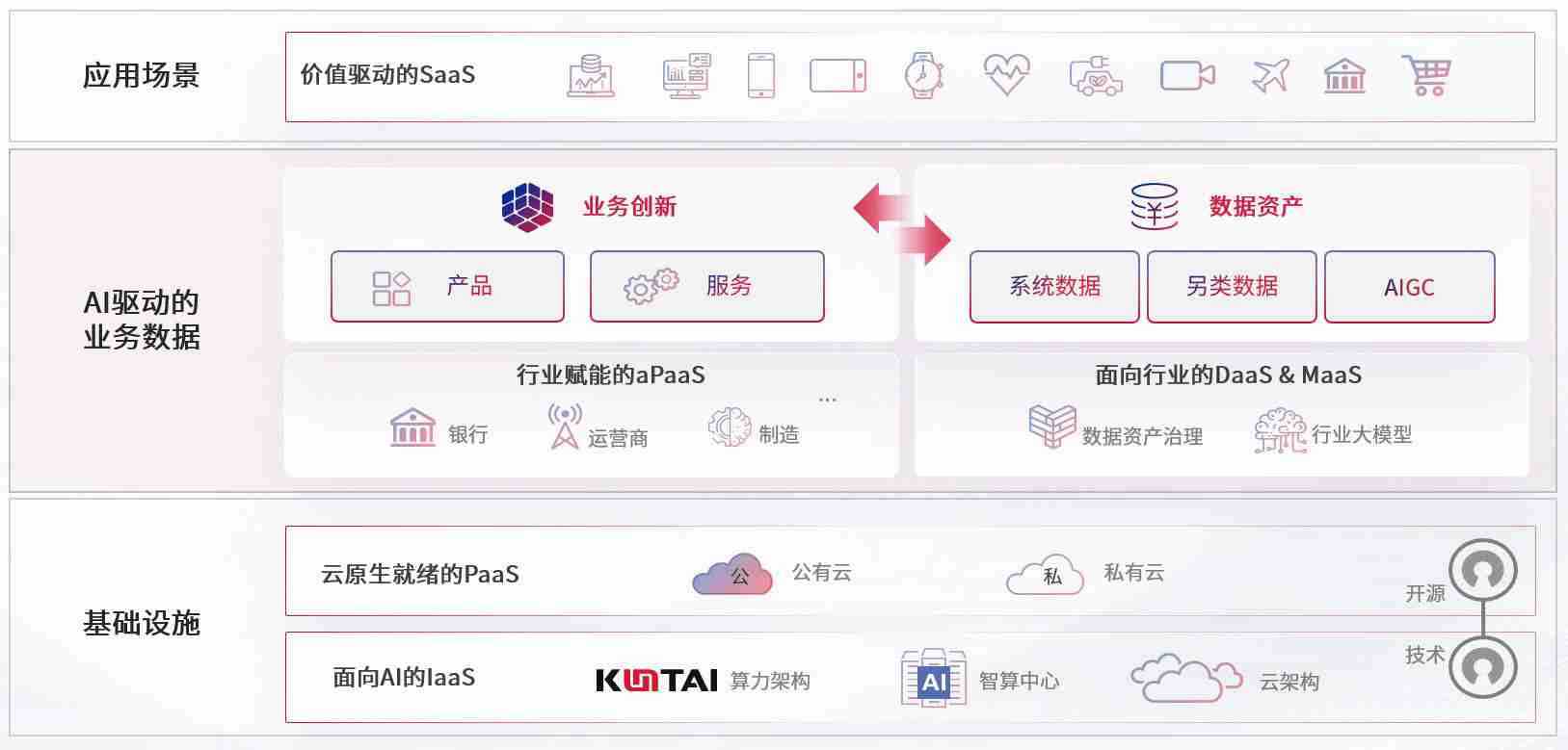 数字时代,,,围绕企业数字化转型的关键要素,,,,bifa数码开创性的提出数云融合战略和技术体系框架,,着力在云原生、、、数字原生、、、AI原生和信创产业上架构产品和服务能力,,,,为处在不同数字化转型阶段的快消零售、、汽车、、、金融、、、、医疗、、、政企、、教育、、运营商等行业客户提供泛在的敏捷IT能力和融合的数据驱动能力,,,,构建跨界融合创新的数字业务场景和新业务模式,,助力企业级客户建立面向未来的核心能力和竞争优势,,,全面推动社会的数字化、、、智能化转型升级。。。