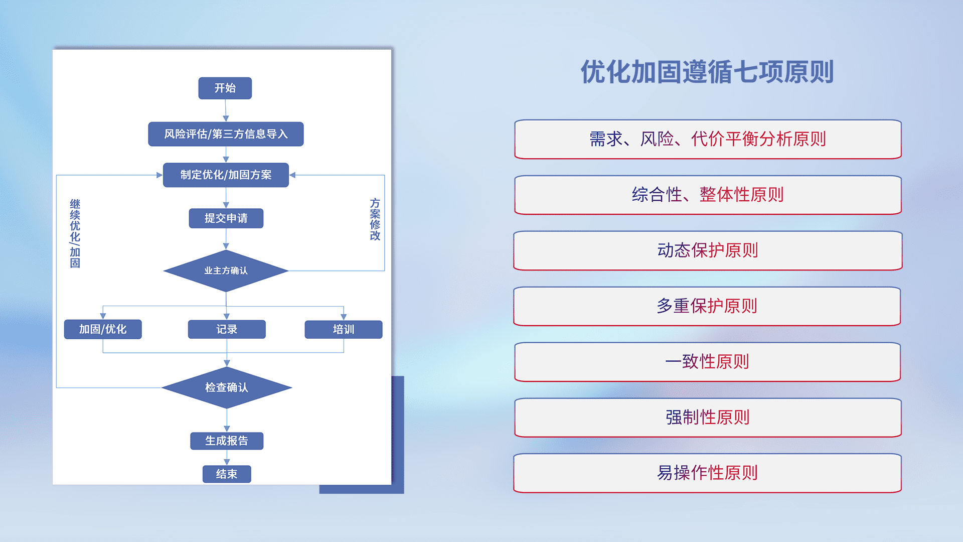 最大程度利用现有资产,,,,对评估发现的问题进行封堵与整改,,,防止漏洞被利用,,,,提升整体网络安全性,,为客户带来高标准的优化加固服务。。。。
